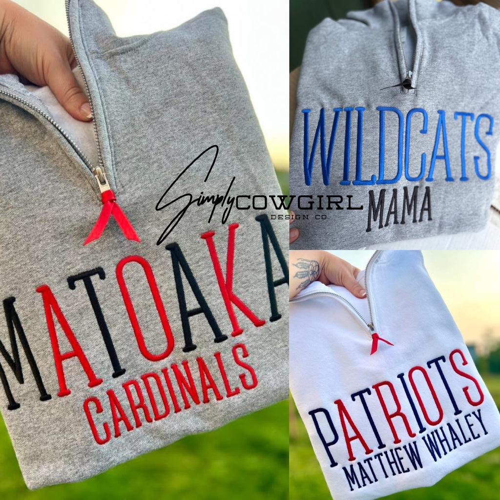 **EMBROIDERED 1/4 Zip Pullovers will have an approximate 25 Business Day Turnaround Time due to the extended time that the embroidery process takes! Please reach out with questions BEFORE ordering**